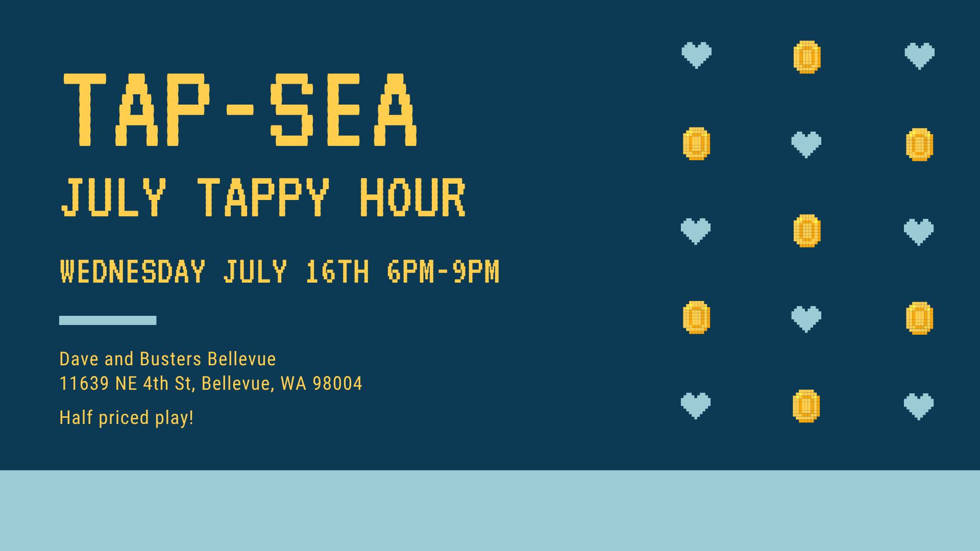 We’ll be at Dave and Busters Bellevue on Wed, July 16th from 6pm-9pm, for half priced play (50% off most arcade games)!